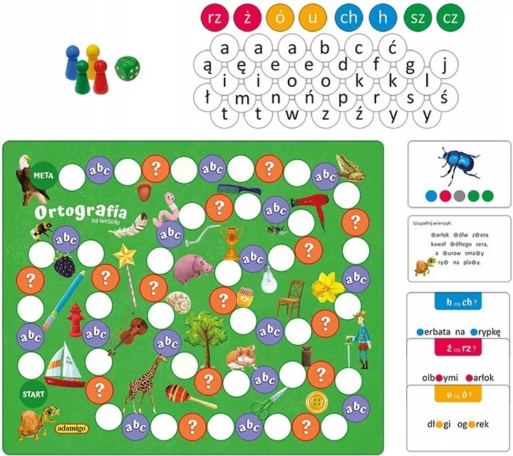 GRA PLANSZOWA Z REBUSAMI I ZAGADKAMI ORTOGRAFIA NA WESOŁO ADAMIGO