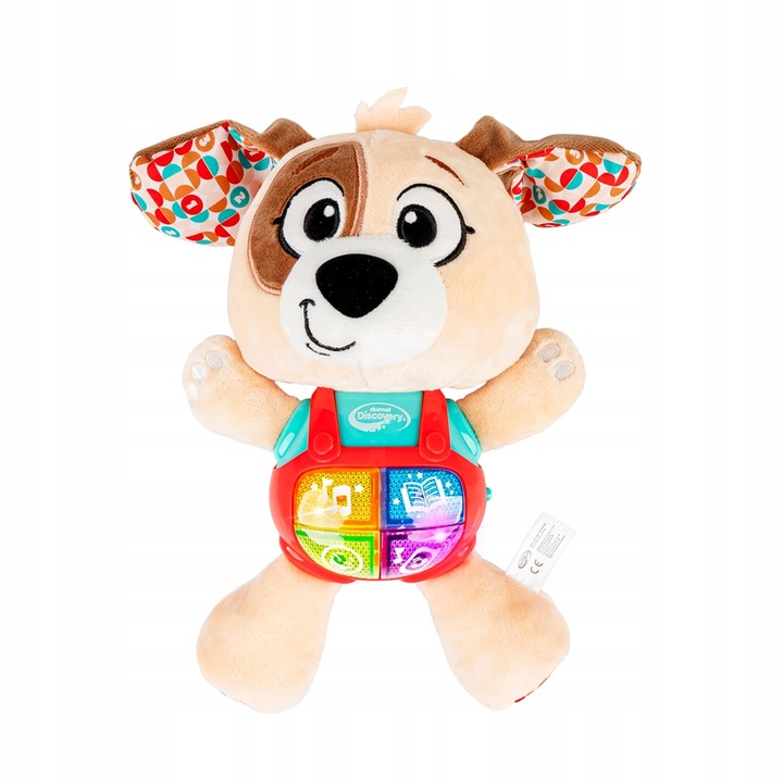 Wesoły bystrzak zapozna najmłodszych z zasadami dobrego wychowania, ucząc o higienie, zdrowym stylu życia, numerach alarmowych i zwrotach grzecznościowych! Na brzuszku tego uroczego pieska znajdują się cztery przyciski, które po naciśnięciu świecą, odtwarzając przeróżne dźwięki. Zabawka łączy naukę z zabawą, gdyż edukacyjne treści i wierszyki, przeplatają się tu z wesołymi piosenkami. Piesio wyposażony został w przełącznik ON/OFF, znajdujący się na boku, który umożliwia bardziej ekonomiczne korzystanie z zabawki, poprzez jej wyłączanie po zakończonej zabawie.