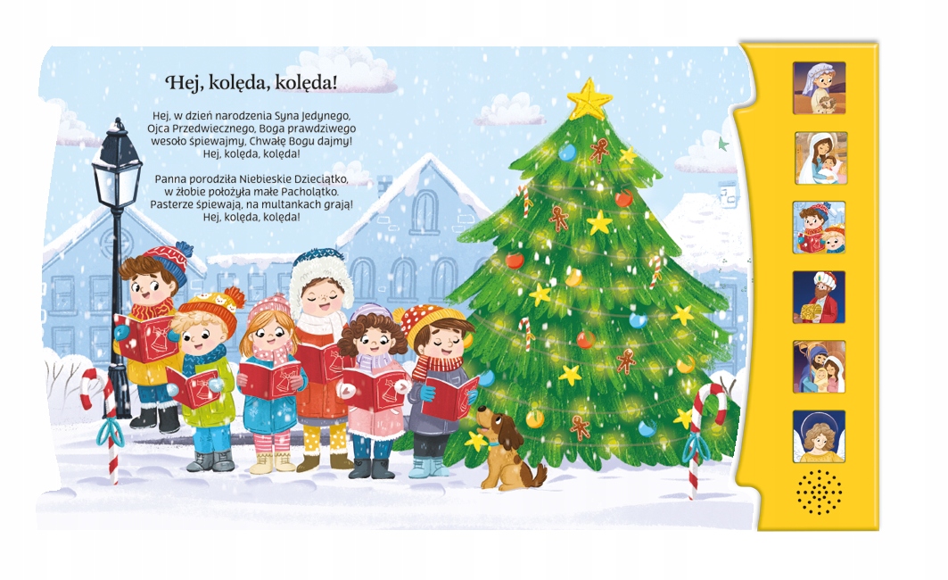 Nasze kolędy to wyjątkowa kartonowa książeczka z panelem dźwiękowym, która idealnie wprowadza dzieci w magiczny nastrój Świąt Bożego Narodzenia. W środku znajdują się teksty tradycyjnych polskich kolęd, a po naciśnięciu przycisku na panelu dziecko usłyszy ich wykonanie w dziecięcej interpretacji.